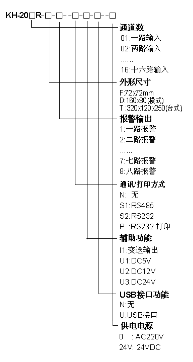 如:有一臺表的型號是:KH204F-2-U;