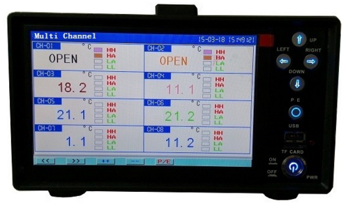 無紙記錄儀是將采集的數據/運算數據以時間為基軸記錄在儀器內部的存儲系統中,無消耗任何常用的記錄設施,如:紙張、筆墨。記錄在儀器內部的存儲數據,通過運算、模擬后顯示在液晶屏。常用顯示用液晶屏比較廣泛。在液晶屏屏幕上,可以顯示數字顯示、棒圖顯示、曲線顯示、報警列表等。